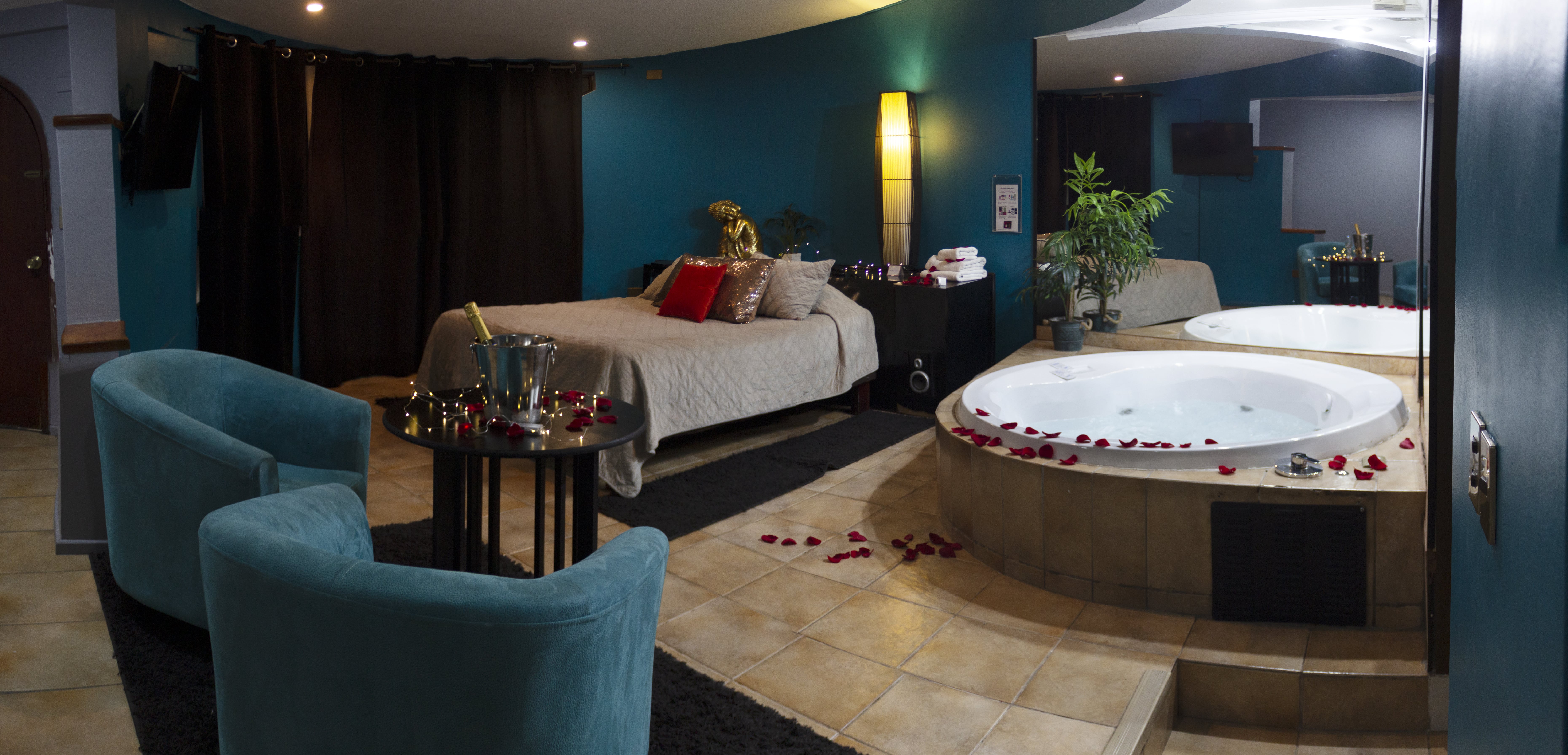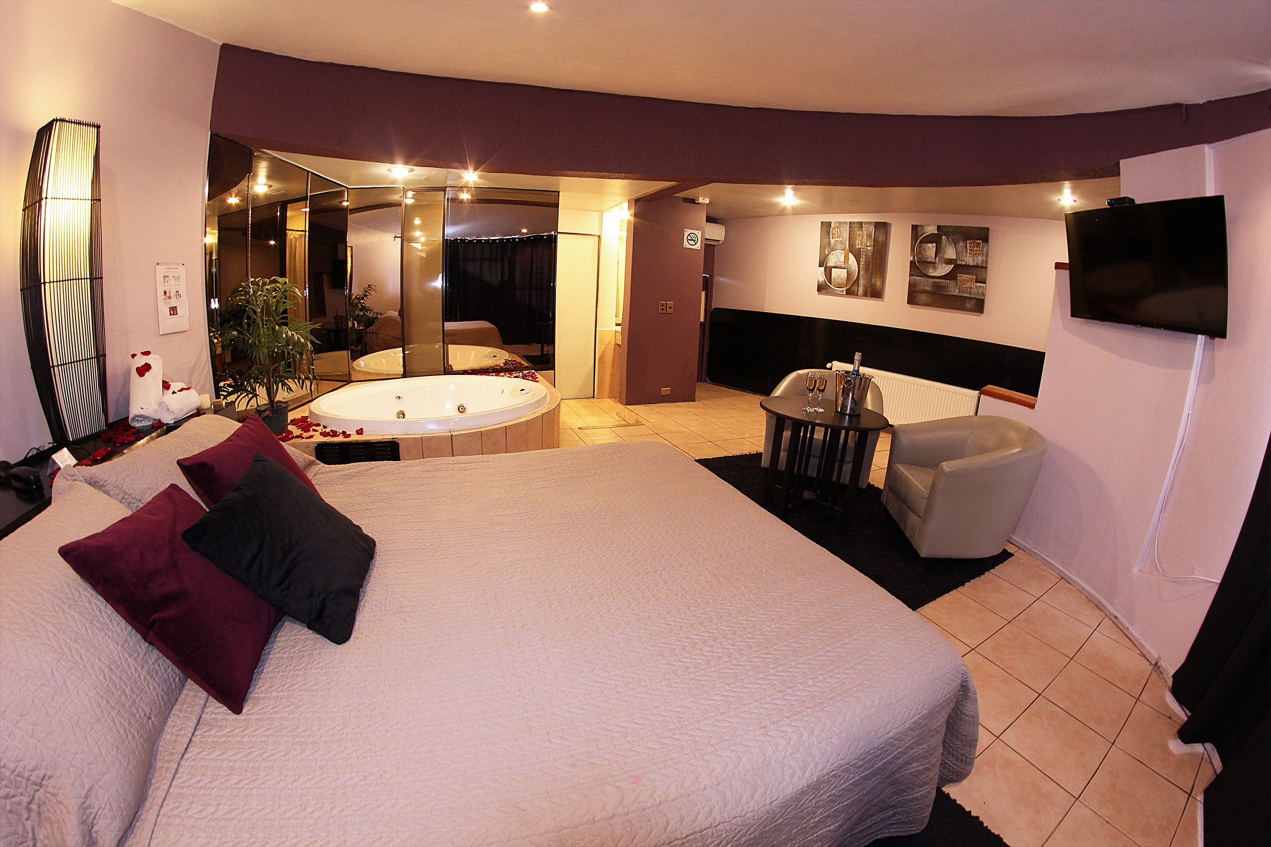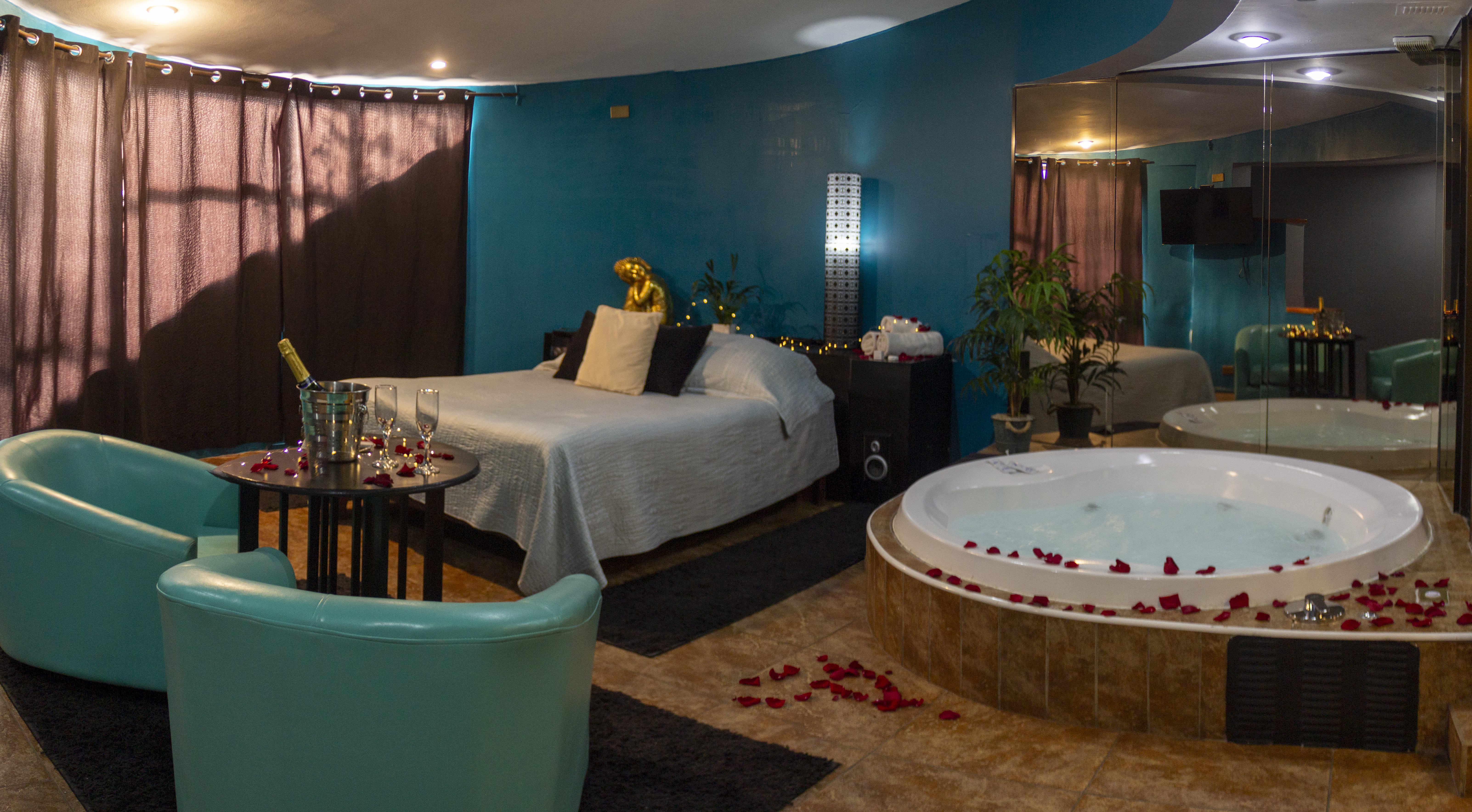 Jacuzzi Grande (1.80 Mts de diámetro), Televisión DirecTV Premium con Canales XXX. Estacionamiento privado por habitación Climatización y Wifi en todas nuestras habitaciones